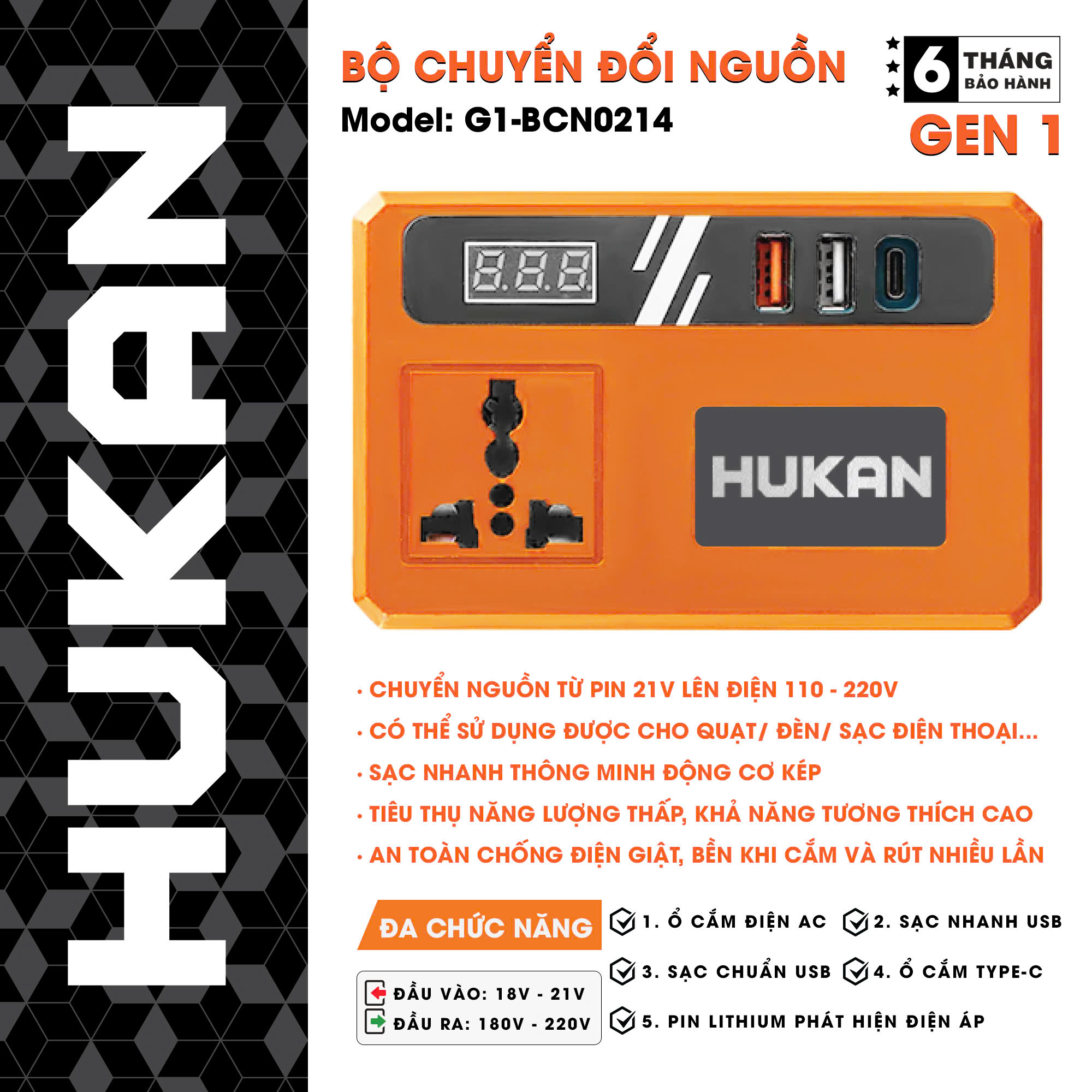 - Đầu ra: 180V – 220V, ổn định cho mọi thiết bị