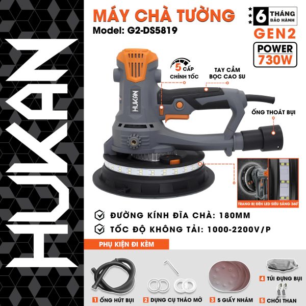 - Công suất mạnh 730W đảm bảo xoa tường nhanh chóng, tiết kiệm thời gian và công sức.